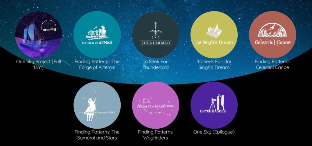 One Sky Video Presentation is a 43 minute full dome 360 degree video. It pulls together 6 distinct stories from around the world. Each showcases the impact that culture has had on our astronomical knowledge and the impact astronomy has had on culture. Each story reinforces that their is only One Sky.